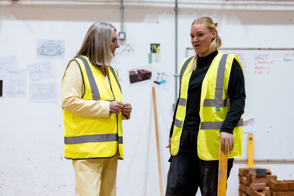 The Minister spent time talking to students about their experiences and the skills they’ve developed while studying at Kidderminster College. Among them was bricklaying student Lauren Robinson, who spoke enthusiastically about her time at the Green Technology Centre: “I wanted something more hands-on, so studying at the Green Technology Centre has been amazing. The atmosphere here is really positive, the environment is helpful, and the teachers are lovely.